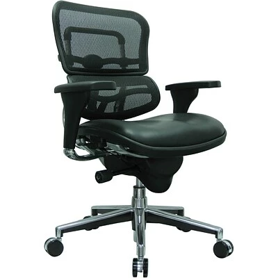Say goodbye to bad posture with this Raynor Eurotech Ergohuman mid-back office chair. Each seat is equipped with a self-regulating lumbar support, a supportive mesh backrest, and a pair of height-adjustable arms. Simply adapt the chair to suit your body type and experience its ergonomic benefits. This seat is weight rated to 250 pounds.