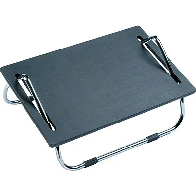 Help reduce strain on legs and feet by setting this black footrest under your desk. The adjustable design lets you customize the angle and height for a perfect fit, while the black color offers a professional look. Featuring a sturdy chrome stand, this footrest has the strength to withstand heavy use.
