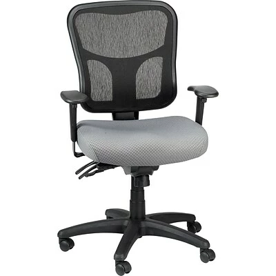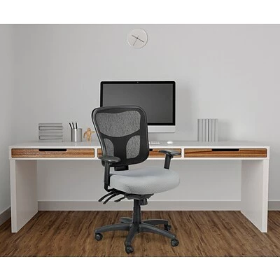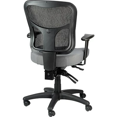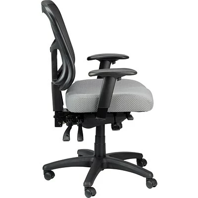 Tempur-Pedic® Ergonomic mesh mid-back task chair features a gray polyester fabric upholstery seat with mesh back for durability and extended comfort. Chair offers height and width adjustable arms to provide ergonomic performance.