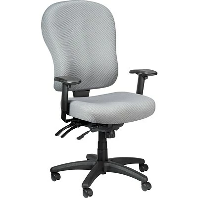 Tempur-Pedic® Ergonomic fabric mid-back task chair provides height and width adjustable arms, center tilt with lock, forward tilt and tilt tension. Chair features a grey polyester fabric upholstery seat to provide durability and extended comfort.