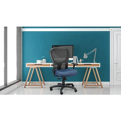 Prepare for marathon work sessions with this navy blue TEMPUR-Pedic mid-back office chair. Soft, plush memory foam seat padding provides a more comfortable seating experience, cushioning your frame throughout the day. The built-in lumbar support works to promote better posture and relieve tired muscles, while the mesh back keeps you cooler as you tackle tough projects. This task chair features tilt tension and tilt lock control mechanisms, so you can recline between conference calls or remain upright when tasks require your full attention. With a handy seat height adjustment lever and adjustable armrests, this TEMPUR-Pedic mid-back office chair lets you create a custom seating configuration.