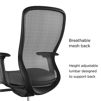 Maintain proper posture when working for long hours with this mesh and fabric chair. The mesh back allows air to circulate freely, keeping you cool and productive throughout the workday, while the adjustable seat height lets you customize sitting positions. Featuring padded and adjustable 3D arms, this chair provides a comfortable resting surface for your hands in between tasks, while the built-in slide adjusts your seat depth for advanced customization. This Workplace2.0 Ayalon black mesh and gray fabric chair features a swiveling base for maneuverability and an easy-access integrated tilt tension knob with a variable position lock, so you can adjust the chair’s recline position effortlessly.