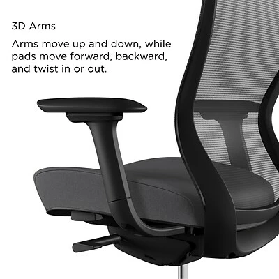 3D arms can move up/down, and the pads can be moved forward/backward and twisted in or out, allowing you to fit the chair to your body